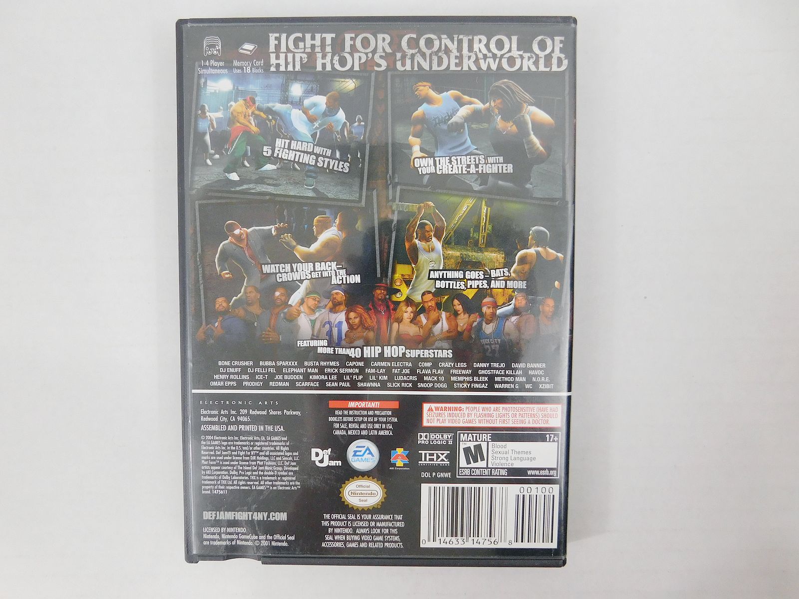 Def Jam: Fight for NY is a 3D fighting video game developed by AKI Corporation and EA Canada and published by EA Games. It was released for the GameCube, PlayStation 2, and Xbox on September 21, 2004. The game is the second main installment in EA's Def Jam-licensed hip-hop video game series, and the direct sequel to Def Jam Vendetta. It was ported to the PlayStation Portable under the title Def Jam Fight for NY: The Takeover in 2006, and was followed up by Def Jam: Icon in 2007.