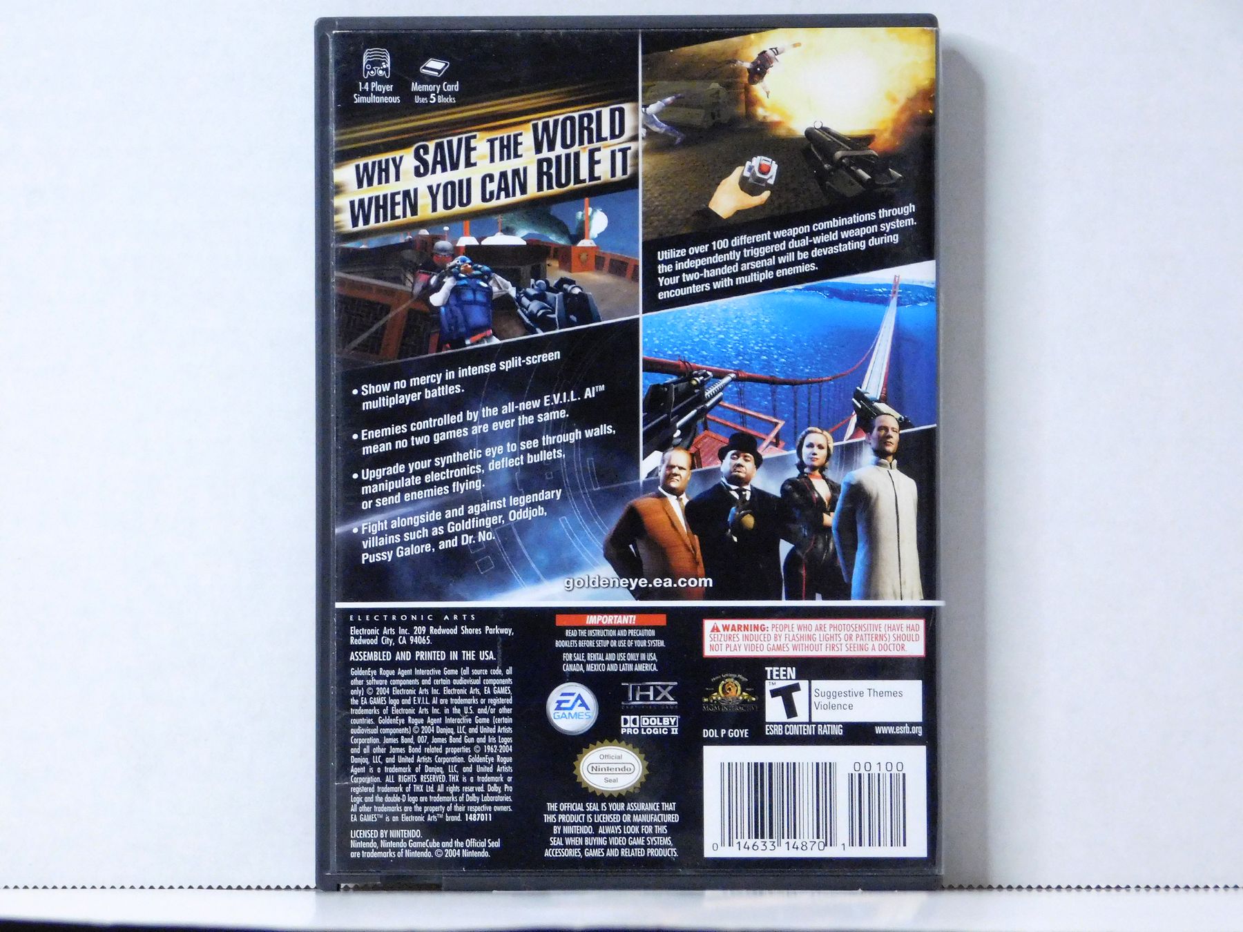 GoldenEye: Rogue Agent is a first-person shooter video game in the James Bond franchise, developed by EA Los Angeles and published by Electronic Arts.