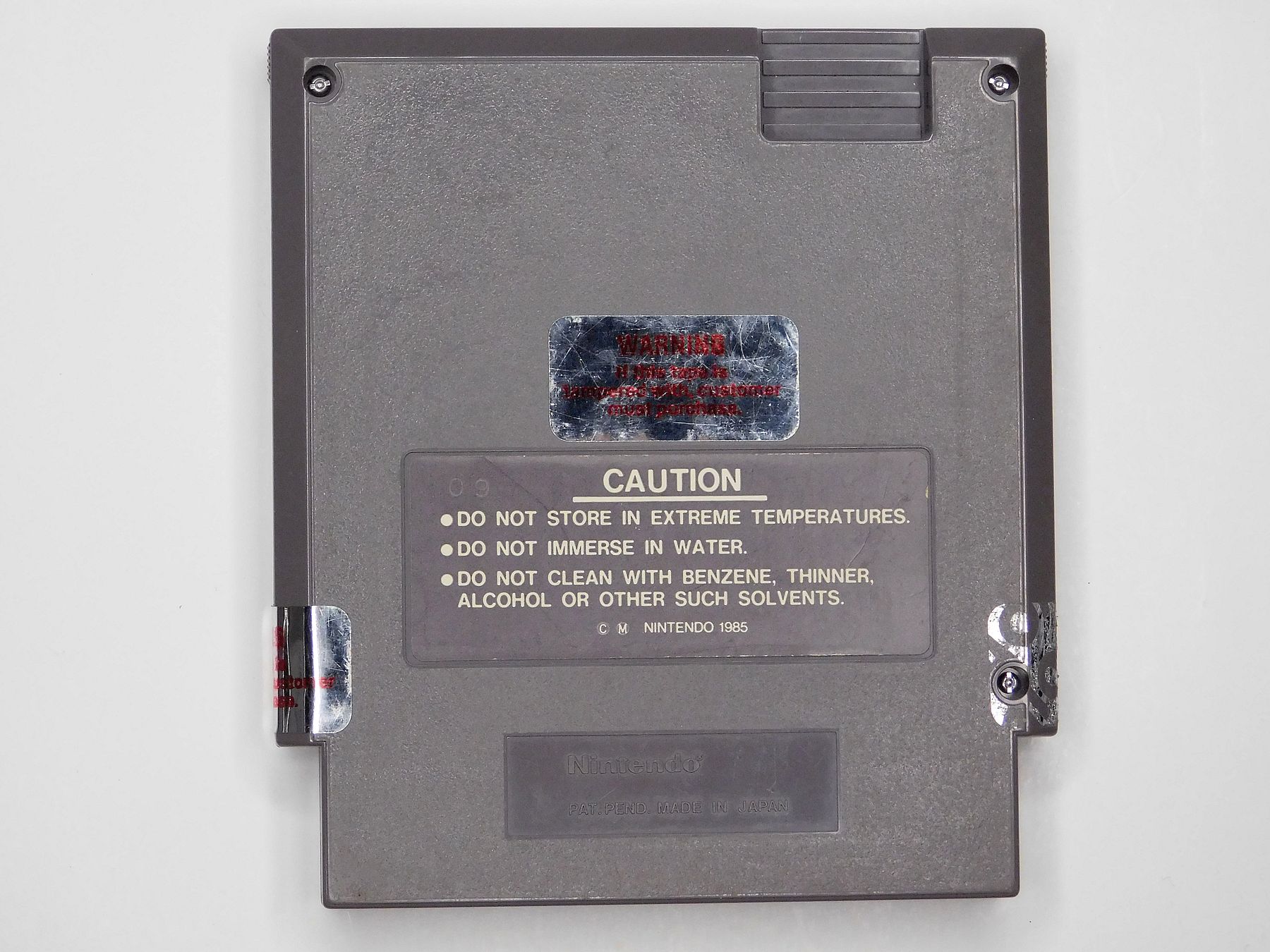 GAME HAS SECURITY STICKER RESIDUE ON CARTRIDGE, DOES NOT AFFECT GAMEPLAY.